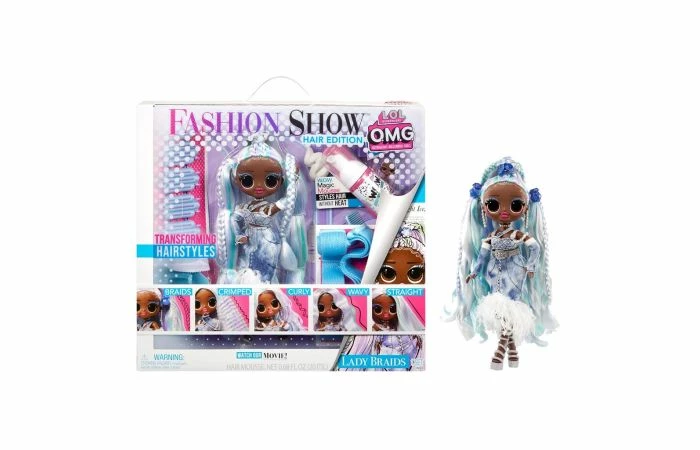 Maak kennis met de LOL. Surprise OMG Fashion Show Hair Edition! Deze OMG-modepoppen maken graag stijlvol plezier met hun vriendinnen en laten zien wie ze zijn op de catwalk. Lady Braids is fenomenaal, fantastisch en klaar voor haar haartransformaties! Ze heeft jouw hulp nodig om op de cover van het tijdschrift Fashion B.B. te komen. Met de gloednieuwe W.O.W. Magic Mousse en de stylinghulpmiddelen kun je binnen 30 minuten kapsels creëren voor op de catwalk, zoals gedraaide vlechten, wafeltjeshaar, krullen, golfjes, recht haar of meer. Allemaal zonder hitte. Zoek je vibe en laat die catwalk oplichten! Lady Braids heeft een heel mooi gezichtje, haar dat perfect geschikt is om te stylen en beweegbare ledematen voor heel veel houdingen. Elke pop is inclusief haartransformerende magische mousse, haarstyling-hulpmiddelen om eenvoudig wafeltjes, krullen, golfjes of recht haar te maken, spectaculaire mode en accessoires met veel details! Wordt geleverd in window box. Geschikt voor kinderen vanaf 4 jaar.