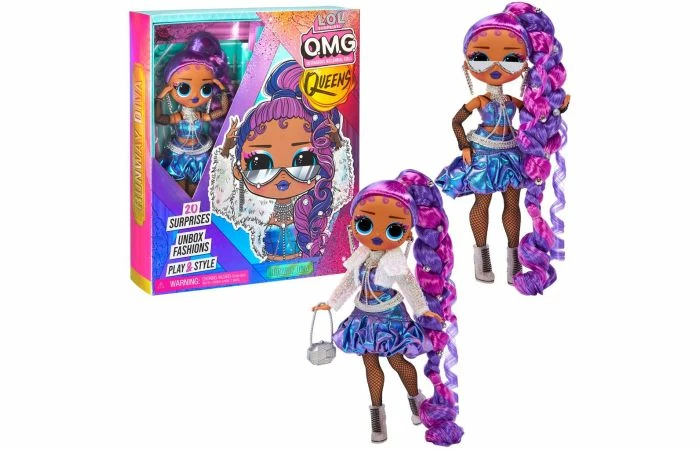 Pak 20 verrassingen uit met de LOL Surprise OMG Queens-modepop Runway Diva inclusief majestueuze mode en accessoires met een koninklijk thema. Runway Diva combineert coole streetwearlooks met glamour en veel bling. Deze koningin kan haar ledematen buigen, zodat ze op de catwalk geweldige poses kan aannemen. Trek Runway Diva haar trendy mode aan en vul aan met de fantastische accessoires. Inhoud: 1 LOL Surprise OMG Queens-modepop, modeoutfit, modeaccessoires, bril, oorbellen, bodysieraad, tasje, schoenen, haarborstel, haarsieraden, kledinghoes, kledinghanger, uitnodiging, poster en poppenstandaard. Verzamel alle 4 de LOL Surprise OMG Queens-modepoppen: Runway Diva, Miss Divine, Sways en Prism. Wordt geleverd in fraaie windowbox. Geschikt voor kinderen vanaf 3 jaar.