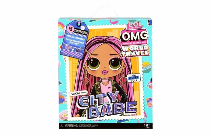 LOL Surprise OMG World Travel-modepop City Babe Pak 15 verrassingen uit, inclusief mode en accessoires met een reisthema, zoals bagage die echt open kan, een nekkussen, koptelefoon en paspoort! City Babe heeft een heel mooi gezichtje, prachtig gestyled haar en beweegbare ledematen voor heel veel houdingen. Bovendien is ze de grote zus van het populaire LOL Surprise-personage Jet Set Q.T. Trek City Babe haar übercoole mode aan en vul aan met de fantastische accessoires. Tip voor pro’s: de handen zijn verwijderbaar, zodat je de pop makkelijk kunt aankleden. De verpakking van elke LOL Surprise OMG World Travel-pop is een herbruikbare speelset. Met City Babe krijg je 1 LOL Surprise OMG-modepop, trendy outfit, mode-accessoires, oorbellen, schoenen, koffer, koptelefoon, nekkussen, haarclip, paspoort, haarborstel, kledinghoes, kledinghanger, poppenstandaard en herbruikbare verpakkingsspeelset. Verzamel alle 3 LOL Surprise OMG World Travel-modepoppen! Geschikt voor kinderen vanaf 4 jaar.