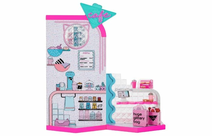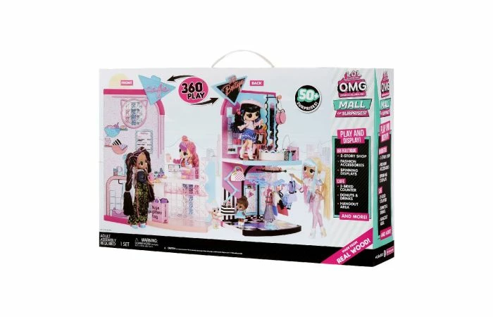 Voor de ultieme plek waar je LOL Surprise-poppen kunnen shoppen tot ze droppen, neem je ze mee naar het LOL Surprise! O.M.G. Winkelcentrum vol verrassingen! Pak 50+ verrassingen uit met deze gloednieuwe speelset, die interactieve glamoureuze speelopties biedt in 360 graden. De B.B. Boutique met twee verdiepingen bevat kledingrekken die echt kunnen draaien om alle inbegrepen opvallende mode-items en accessoires te showen. Het café wordt geleverd met een dubbelzijdige toog, klaar om verschillende heerlijke donuts en drankjes te bestellen en serveren. In het LOL Surprise! OMG Winkelcentrum vol verrassingen kun je shoppen en spelen met alle LOL Surprise Tweens-, OMG- en verzamelbare poppen. Combineer deze speelset met de LOL Shine On Salon en spa en het OMG House of Surprises-poppenhuis om een compleet nieuwe wereld vol speelplezier te creëren voor al je mode- en verzamelpoppen!