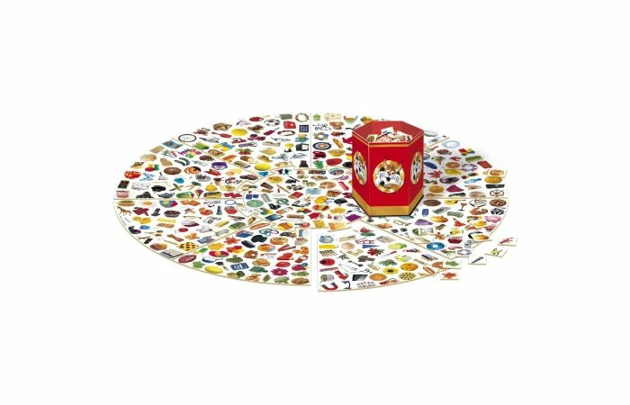 Verbeter je concentratie en train je brein met Lynx! Zet het spelbord in elkaar, schud de kaartjes en pak er 3. Zoek en vind als snelste jouw plaatjes. Waar zijn de koekjes, de gitaar en de tennisbal? Vind als eerste jouw 3 plaatjes op het bord en win! Doordat het spelbord als een puzzel in elkaar zit, zijn de verschillende puzzelstukken steeds op een andere manier in elkaar te leggen. Denken jouw medespelers je dus te slim af te zijn door de volgorde van de afbeeldingen te onthouden? Wissel de puzzelstukken en je hebt weer een compleet nieuwe uitdaging om jouw afbeeldingen als eerste te vinden. Geschikt voor 2 of meer spelers vanaf 6 jaar.