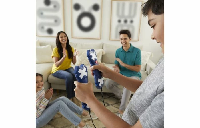 Bekijk de lampjes goed en haal niks door elkaar tijdens het spannende elektronische spel Crossed Signals! Kies 1 van de 4 verschillende spellen op de unit. Als de spelers de lampjes zien, moeten ze snel reageren! Zie je een pijl? Beweeg de stick in die richting. Zie je een X? Beweeg dan in de tegenovergestelde richting. Branden beide pijlen? Schudden maar! Speel alleen of samen met maximaal 3 vrienden. Het spel Crossed Signals gebruikt licht en spraakopdrachten om je in beweging te krijgen en je snelheid en nauwkeurigheid te testen. Er is ook een duelmodus waarbij 2 spelers elk een stick gebruiken. De speler met de hoogste score is de winnaar! Speel dit waanzinnige spel met licht en actie samen met maximaal 4 spelers! Dit spel krijgt iedere speelafspraak of spelletjesavond op gang met actie voor binnen en buiten. Geschikt voor 1 tot 4 spelers vanaf 8 jaar.