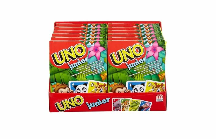 UNO Junior, een leuk en snel spel waar kinderen dol op zijn. Alle speelpret van het klassieke UNO spel, maar met minder regels! Lukt het jou om als eerste je kaarten kwijt te raken? Maar vergeet niet om bij je laatste kaart UNO! te roepen. Er staan grappige dierenafbeeldingen op de speelkaarten, om het spel nóg leuker te maken. Geschikt voor 2 tot 4 spelers vanaf 3 jaar.
