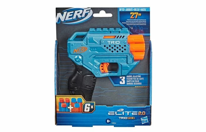 Trek de hendel naar beneden om de blaster door te laden. Kies je doelwit en haal de trekker over om een dart af te vuren. De set bevat 6 officiële Nerf-darts, 3 om te laden in de blaster en 3 als reserve. Schiet darts tot 27 meter ver. Extra accessoires en oogbescherming niet inbegrepen. Werkt zonder batterijen. Wordt geleverd in touchbox. Geschikt voor kinderen vanaf 8 jaar.