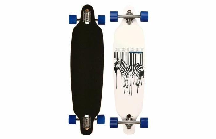 Hierdoor ligt het zwaartepunt lager met als resultaat meer stabiliteit, ook bij hogere snelheden, daarnaast is het makkelijker om harder te steppen, maar ook makkelijker om te remmen met de voeten, ideaal te gebruiken op hellingen. Het board kent alleen overhang bij de achterwielen (tail), door de tail (die iets omhoog loopt) is dit longboard naast relaxt cruisen zeer geschikt voor het maken van tricks. Deze Black Dragon is getest conform EN 13613: 2009, Class A: 50-100 kg.