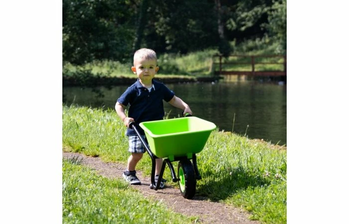 Met deze stoere kruiwagen kun je natuurlijk zand verplaatsen, maar ook water! De bak is namelijk uit één stuk gegoten.