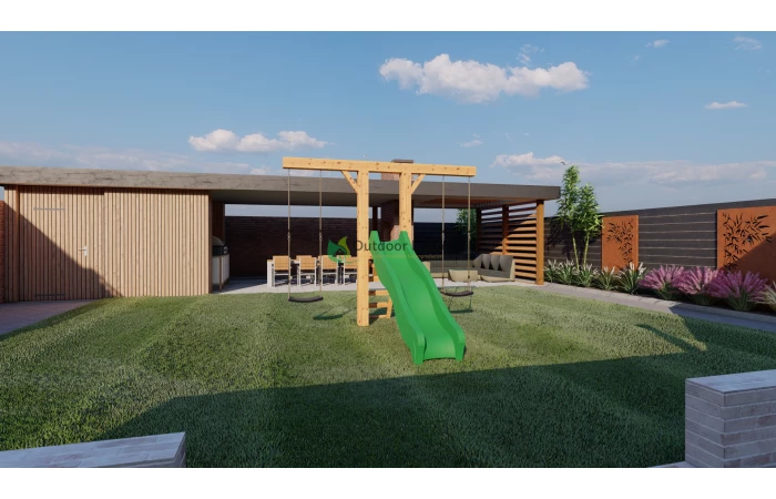 Deze Douglas schommels worden veilig afgewerkt met afdekdoppen om zo volledige veiligheid te bieden.