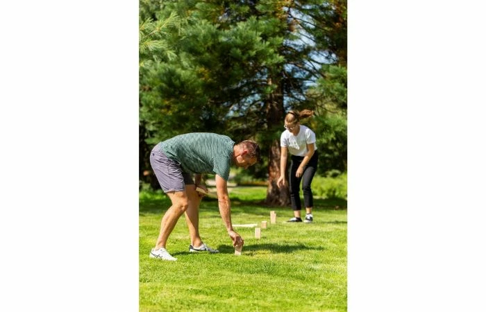 - Inhoud: 1 koning van 7 x 7 x 30 cm, 10 basistorens van 5,5 x 5,5 x 15 cm en 6 werpstokken van 30 x 4 cm.