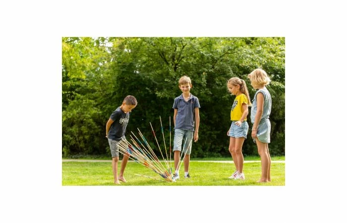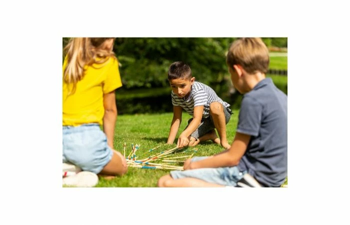 Laat de grote mikadostokjes vallen en trek ze er één voor één weer voorzichtig tussenuit! De stokjes zijn gemaakt van bamboe. Geschikt voor kinderen vanaf 5 jaar.