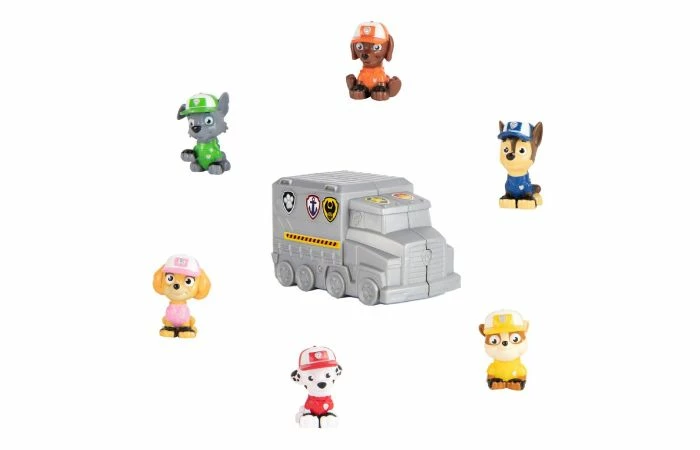 Elke 5 cm hoge pup-miniactiefiguur wordt geleverd in een vrachtwagenverpakking. Het is een verrassing wie erin zit. Open de oplegger van de truck en ontdek welke verrassingspup in een dynamische actiepose op je zit te wachten. Zodra je je geweldige nieuwe figuur hebt ontdekt, kun je met de vrachtwagenverpakking al je spannende Big Truck Pup-missies naspelen. Of je bewaart het figuurtje in de herbruikbare verpakking tot je weer klaar bent om te spelen. Er zijn zes Big Truck-pups om te verzamelen: Chase, Marshall, Skye, Rocky, Rubble of Zuma. Voeg ze allemaal toe aan je collectie (elk afzonderlijk verkocht). Speel thuis met de mini-Big Truck en de PAW Patrol Big Truck Pups-minifiguren. Inhoud: 1 PAW Patrol Big Truck Pup-figuur, 1 Big Truck-verpakking. Verpakt in display. Geschikt voor kinderen vanaf 3 jaar.
