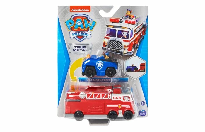 Dit grote die-cast teamvoertuig is het grootste Paw Patrol True Metal-voertuig tot nu toe. Het is meer dan 12,7 cm lang en wordt geleverd met een Chase-reddingsvoertuig op schaal 1:55, dat je rechtstreeks in de Ultimate Brandweerwagen kunt rijden. Laat de oprijplaat aan de achterkant zakken en rijd het reddingsvoertuig van Chase zo de brandweerauto in. Klap de plaat op en rijd van de ene spannende reddingsmissie naar de andere. In de True Metal Ultimate Brandweerwagen kun je alle Paw Patrol True Metal-voertuigen van schaal 1:55 uit je collectie opbergen, extra speelgoedvoertuig’s worden afzonderlijk verkocht. Inhoud: 1 True Metal Ultimate Brandweerwagen, 1 True Metal Chase-reddingsvoertuig schaal 1:55. Wordt geleverd op blisterkaart. Geschikt voor kinderen vanaf 3 jaar.