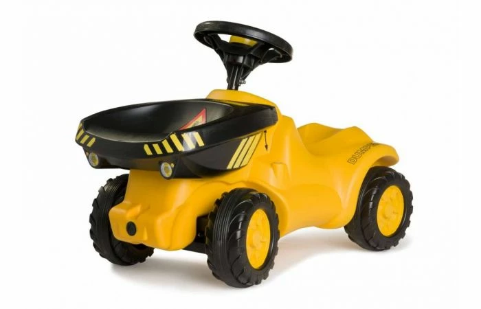 Dumper loopauto met kiepbakje. Met robuust stuurmechanisme en kniesteun aan de achterzijde. Schep het zand er maar in. De Dumper Minitrac helpt je mee om het zand te vervoeren.