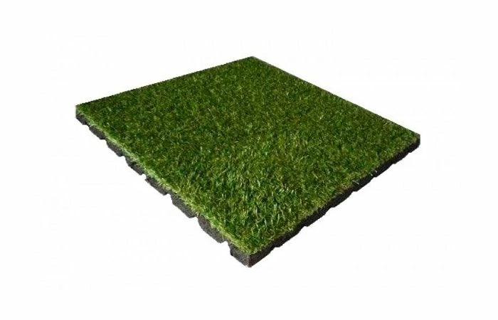 Kunstgras rubberen tegel voor bij een speeltoestel of schommel.