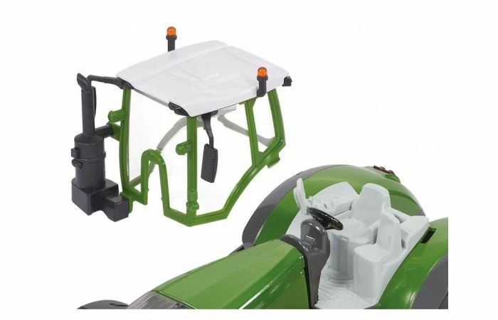 De nieuwe Fendt 1050 Vario wordt door Fendt aangeduid als Duits meesterwerk. Nu komt deze ook op speelgoedformaat in de kinderkamer. Het SIKU model van kunststof en metaal geeft de geweldige proporties van de originele machine optimaal weer. De nieuwe vormgeving van de motorkap met de grimmige blik is net zo nauwkeurig uitgewerkt als de nieuwe achterband met nieuwe afmetingen. De bestuurbare vooras is voorzien van een pendelfunctie. De zware motorkap kan worden geopend en de cabine is afneembaar. Voor en achter zijn SIKU standaardkoppelingen aanwezig.