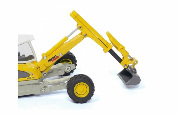 Het chassis met poten die als een spin kunnen worden versteld heeft ook grip in moeilijk begaanbaar terrein. De meervoudig beweegbare graafarm kan telescopisch worden uitgeschoven en is verbonden met de 360^0 draaibare cabine. Het grotendeels metalen model is voorzien van de typische Menzi-Muck kleuren.