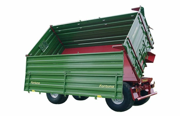 Elektronisch gestuurde tweezijden-kipaanhangwagen met draaischamel en dissel. De aanhangwagen heeft een eigen stroomverzorging met behulp van een accu en wordt met een datakabel met de tractor verbonden. De bak van de aanhangwagen is elektronisch naar achter kipbaar. Hiervoor kan het reeds voorhanden afstandsbesturingsmoduul worden gebruikt. In het achterbereik van de aanhangwagen zorgen rode en oranje LED’s voorachterlicht en knipperlicht. Op grond van de eigen stroomverzorging kan de aanhangwagen ook zonder de Control-tractor resp. het afstandsbesturingsmoduul worden gebruikt. Desbetreffende schakelaars zijn aan het model voorgezien, zodat kip- en lichtfunctie kunnen worden aangestuurd.