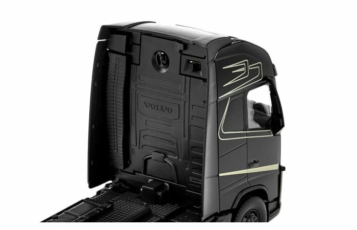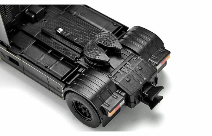 De SIKUCONTROL-truck van metaal en kunststof onderscheidt zich niet alleen door de talrijke features maar ook door de aandacht voor details die de fans weten te waarderen. De chauffeurscabine van metaal is matzwart gelakt en gedetailleerd bedrukt.