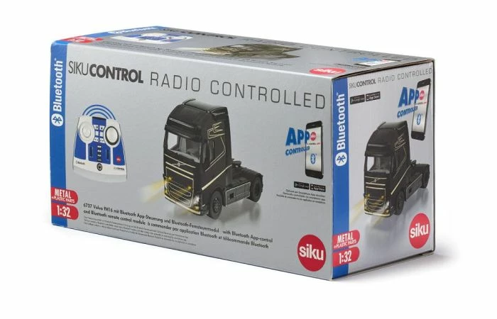 Alle functies, LED-verlichting en de twee transmissies van de Volvo FH16 4×2 kunnen via de app worden bediend, of naar keuze ook via de virtuele joystick bediening of de bewegings- en kantelsensoren van het mobiele apparaat. Deze intuïtieve feature is een welkome afwisseling en zorgt voor extra plezier bij het spelen. De Volvo-truck wordt via een as aangedreven. Met de app is zowel nauwkeurig rangeren mogelijk als het aan- en afkoppelen van de 3-assige kipper-oplegger (artikel 6734). Bovendien is in de trekker een databus ingebouwd om de besturing aan de oplegger door te geven.