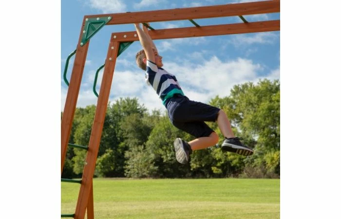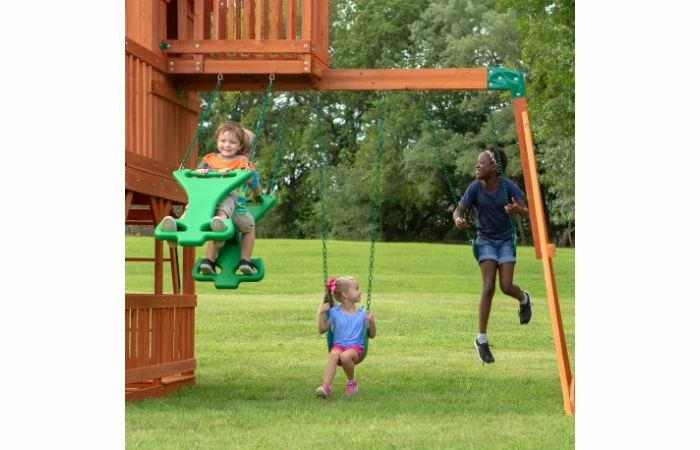 De Skyfort II is gemaakt van 100% cederhout. Met een kleine, strakke noesten structuur, zal je hout minder snel kleine scheurtjes ontwikkelen die voortkomen uit de noesten. Uit laboratoriumtests is gebleken dat ons duurzame cederhout bestand is tegen weersinvloeden en zeer goed bestand is tegen houtrot. Al het hout is behandeld met een watergedragen beits voor een glad en helder uiterlijk, evenals op maat gezaagd en gestempeld met het onderdeelnummer om het bouwproces te versnellen. Het kan nodig zijn om een onderdeel voor te boren. Onze exclusieve Safe-T-Fuse hardware maakt de montage eenvoudig en veilig. De gelamineerde schommel balk is sterk gebouwd, met stalen klembeugels om ervoor te zorgen dat het schommelen altijd veilig is.