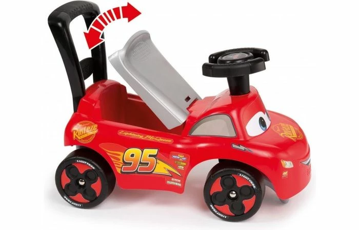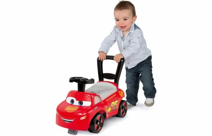 Een kindje kan zitten op het ergonomisch zitje of achter de loopauto lopen en zich vasthouden aan de duwstang. Met deze auto leren kinderen gemakkelijk en op een leuke manier lopen. Onder het zitje zit een handig opbergvak.