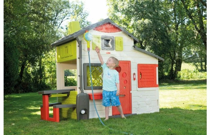 Zomerse dagen worden een stuk aangenamer met de Smoby handdouche! Je kunt hem op de grond zetten, in de hand nemen of zelfs in je tuinhuis hangen. Er wordt een bevestigingsstuk meegeleverd om het aan de cabine te kunnen bevestigen (compatibel met alle Smoby-huizen). Je kunt een Gardena type connector gebruiken om hem eenvoudig aan te sluiten op je tuinslang (niet meegeleverd). Handig, je kunt ook de waterstroom aanpassen. Uw kinderen zullen verrukt zijn om af te koelen met dit waterspel! Voor 2 jaar.