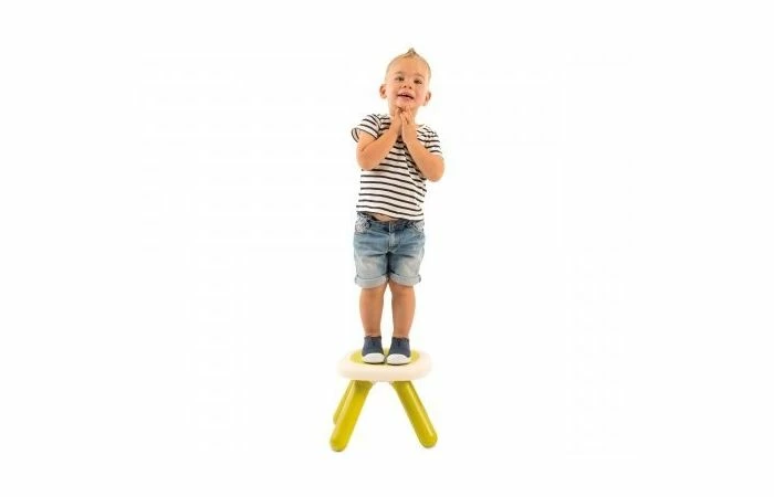 Deze leuke Smoby outdoor kruk ziet er door de dikke rondvormige poten speels uit en nodigt kinderen uit om te zitten. De krukpoten hebben een groene kleur en het zitvlak heeft een vierkanten vorm in de kleuren wit en groen.