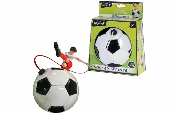 Train je voetbal-skills met deze SportX voetbaltrainer! De bal zit bevestigd aan een koord van 150 cm lang. Dit koord houd je vast, waardoor de bal weer bij je terugkomt, als je hem weggeschopt hebt! De bal heeft 32 panels, is vervaardigd van PVC en weegt 140-160 gram. Geschikt voor kinderen vanaf 6 jaar.