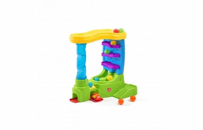 – De felgekleurde toren bevat een Ball Buddies kiepwagen parkeerplaats en ruimte om de ballen te plaatsen en zo eenvoudig op te ruimen