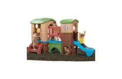 Klim, glijd en kruip urenlang om dit grote speelhuis te onderzoeken. Inclusief dakraam, stuurwiel, raampjes en twee glijbanen. Klimladder en stevige grip om de jonge klimmertjes te begeleiden. Brug is verbonden met uitkijktoren met raampjes en glijbaan. Verstop plekje onder de kruiptunnel.
