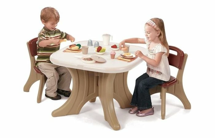 Nodig je vriendjes uit voor een etentje of een knutselfeestje, want aan deze tafel heb je samen uren plezier! De tafel en stoelen zijn gemaakt van stevig materiaal en zullen superleuk staan op jouw kamer. De set kan binnen en buiten gebruikt worden.