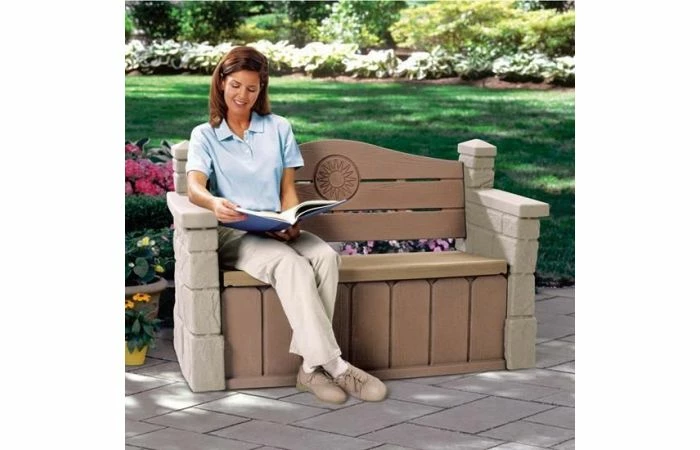 Deze Step2 Outdoor Storage Bench is een realistische bank in steenlook die u zitcomfort en bergruimte voor uw outdooraccessoires biedt. Ideaal voor elke patio of tuin. Deze duurzame opbergbox voor buiten is de perfecte manier om tuingereedschap, gereedschap, zwembadspeelgoed, enz. op te bergen!