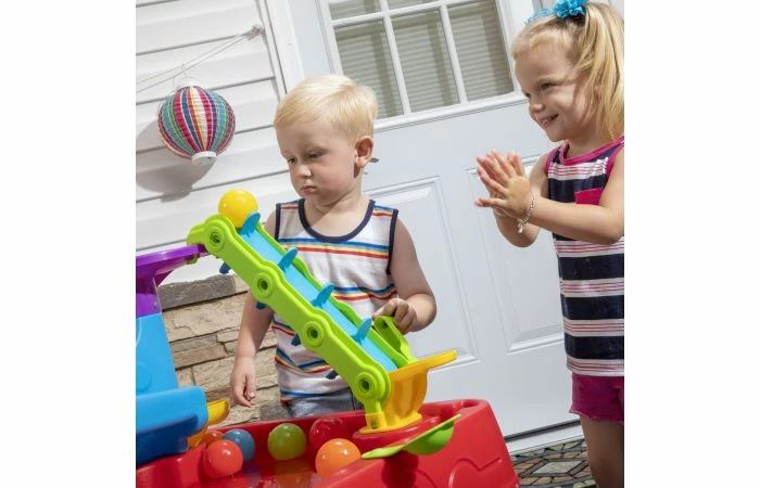 Kindvriendelijke eenvoudige toestellen komen tot leven met het leuke en vermakelijke STEM balspel! Deze balspeltafel voor kinderen heeft het allemaal, van hendels tot katapulten en katrolsystemen. Klaar om te beginnen? Plaats een bal onderaan de toren, span de riem en het katrolsysteem om de ballen omhoog te halen tot helemaal bovenaan! Kijk hoe de bal naar beneden gaat in de trechter, langs een aantal schansen en uiteindelijk weer in het tafelbakje eindigt. Tijdens het spelen leren de kleintjes de beginselen van natuurkunde, zoals beweging, kracht, oorzaak en gevolg, verhoudingen en nog veel meer!