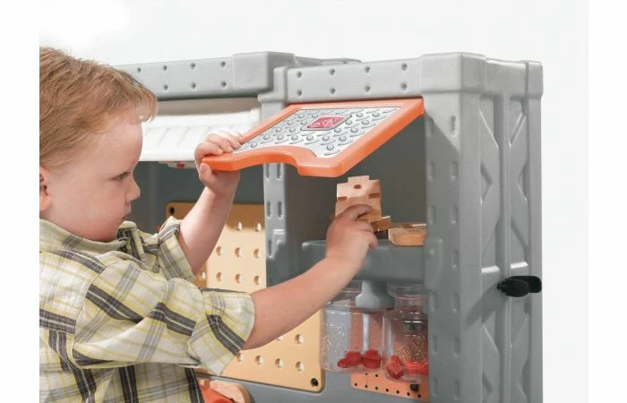 Met deze Deluxe Workshop van Step2 wanen kleine kinderen zich een echte timmerman of ontwerper door houten meesterwerken te maken met Durafoam™. Kinderen kunnen doen alsof ze een klusjesman of -vrouw zijn terwijl ze hun speelgoedgereedschap gebruiken. Deze gereedschapswerkplaats voor kinderen is groot en biedt veel ruimte en accessoires om met meerdere kinderen te spelen.aken.
