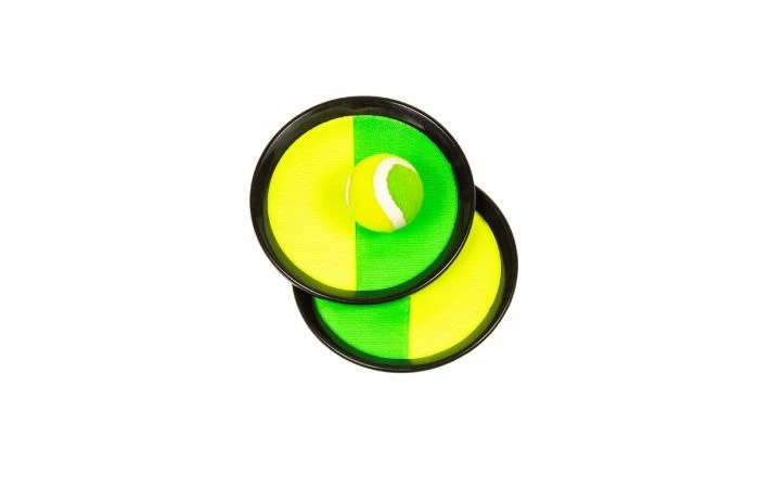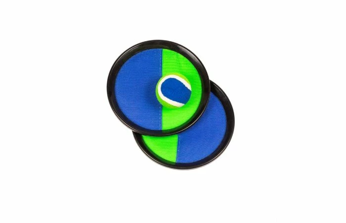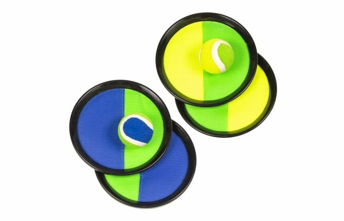 Summertime Catch ball vangspel, met 2 vangkleefborden en een bal. Wordt 2 assorti kleuren geleverd: groen met geel en groen met blauw. Diameter: 19,5 cm. Wordt geleverd in net met hangtag. Geschikt voor kinderen vanaf 5 jaar.