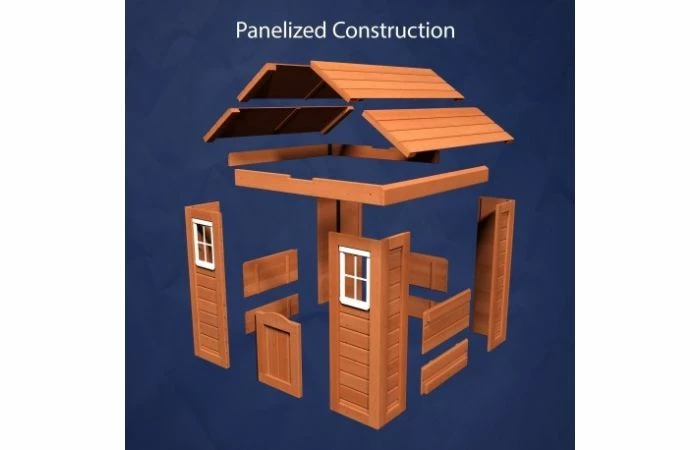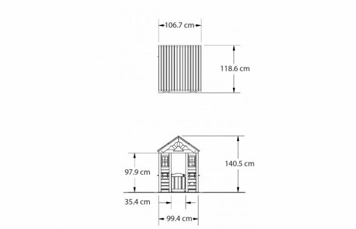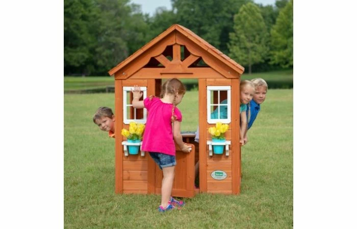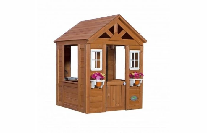 Het Timberlake Speelhuis is een geweldig speelhuis waar iedereen dol op zal zijn. Het heeft brede ramen die zonnige briesjes door kunnen blazen. De voorkant is versierd met bloempot houders en een schattige halve deur. Aan de ene kant is er een snack-venster voor het serveren van koele drankjes op een zomerse dag. En van binnen zijn er speelaccessoires met een gootsteen, een kachel en een draadloze telefoon.