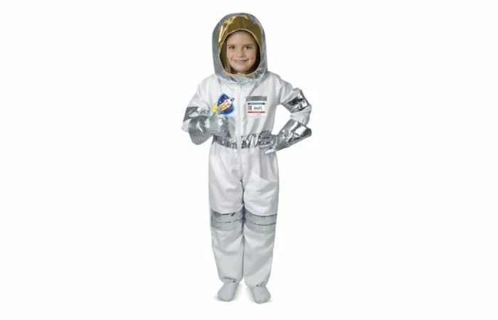 Inhoud: ééndeligpak, austronautenhelm, zilveren handschoenen (stretch) en een herbruikbaar naamlabel