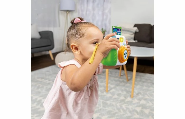 Druk op de blauwe toets om foto’s te maken en druk op de rode toets om je foto te printen of speel een uitdagend zoekspelletje! Laten we samen foto’s maken! Wordt inclusief 2 AAA-batterijen geleverd in try-me verpakking. Geschikt voor kinderen vanaf 1 jaar.