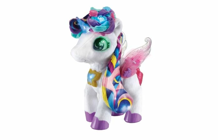 Gebruik de toverstaf en kies een kleur voor Styla’s ogen, bloem, hoorn, manen of vleugels! Blaas een kusje naar haar bloem en zie deze bloeien en oplichten in mooie kleuren. Druk op de knipperende amulet of raak haar neus aan voor leuke activiteiten en zie haar vleugels op magische wijze bewegen! Verander de stijl van haar eenhorn-manen en voeg leuke haarclipjes toe! Wordt inclusief 2 AA-batterijen geleverd in try-me verpakking. Geschikt voor kinderen vanaf 4 jaar.