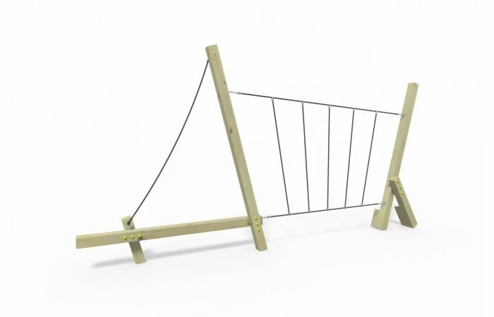 - Gebruikt hout is Vuren geïmpregneerd, met een sterkteklasse van C24. Dit constructiehout is zeer geschikt om onderhoudsvrije speeltoestellen te maken. Het hout wordt op maat gezaagd geleverd met afgeronde hoekjes.