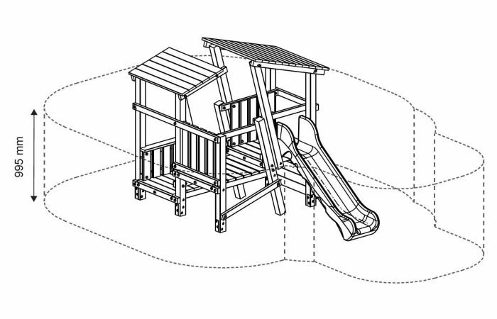 - Valhoogte van dit toestel is 100cm. Als ondergrond adviseren wij zand, snippers of schors.