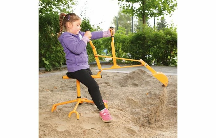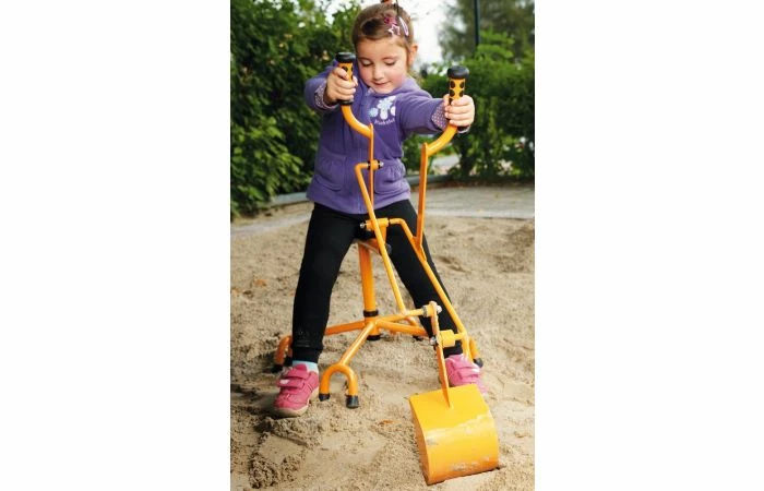 Deze solide graafmachine is geschikt voor in de zandbak. Kinderen kunnen de hele zandbak rondgraven met deze robuuste zandgraver door zijn 360 graden draaistoel. Zet je schrap met je voeten en graven maar!